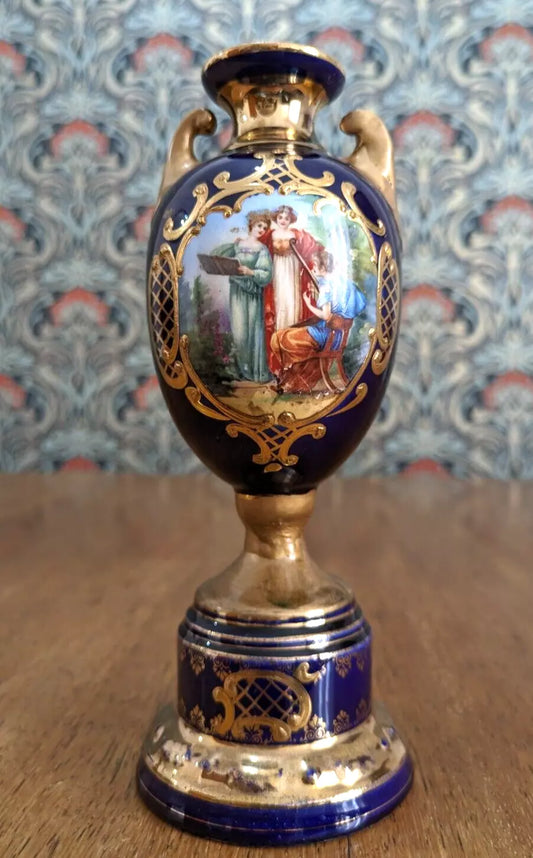 20th Century Austrian Hand Painted Cobalt Ceramic Urn Vase Antique Josef Strnact