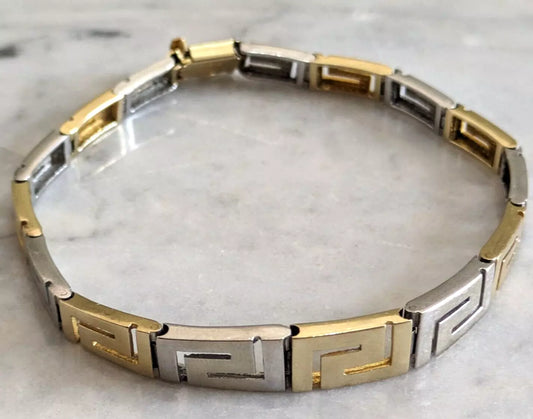 Solid 14ct Carat Yellow White Gold Greek Key Link Bracelet Jewellery 7.75" 15.7g
