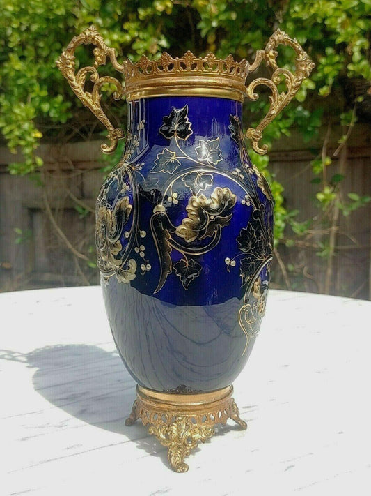 19th Century French Cobalt & Bronze Ormolu Mounted Ceramic Griffin Vase
