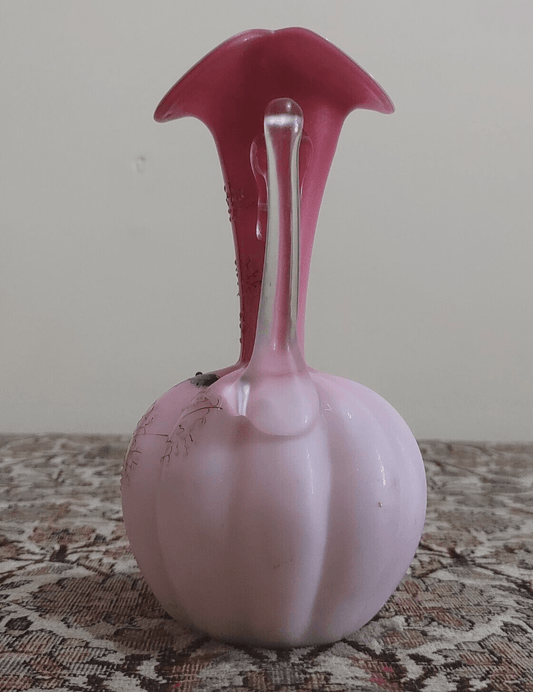 Antique Victorian Enamelled Pink Opaline Milk Satin Glass Ewer Jug