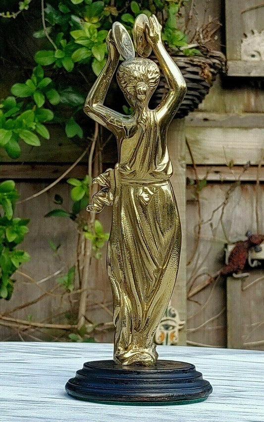 English 19th Century Victorian Antique Brass Woman Cymbalist Figurine - Lozenge Mark