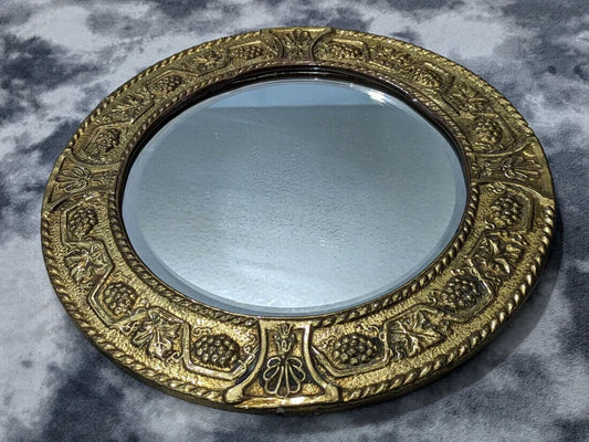 Antique Arts & Crafts Movement Round Brass Bevelled Circular Wall Mirror 35.5 cm