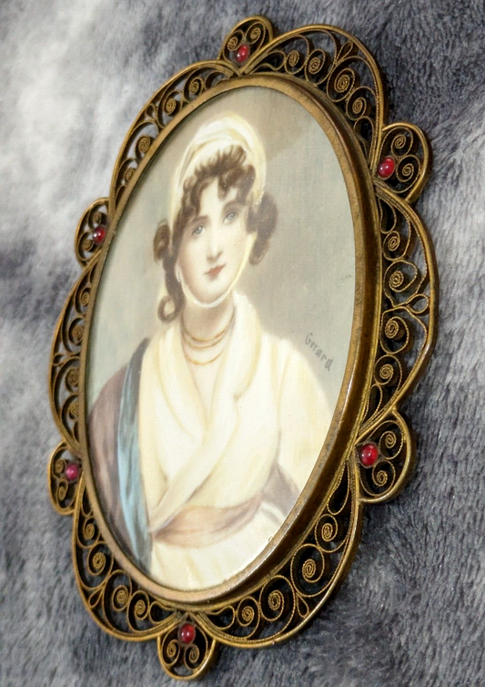 Antique Miniature Oil Painting Art Portrait Sarah Siddons Framed Francois Gerard