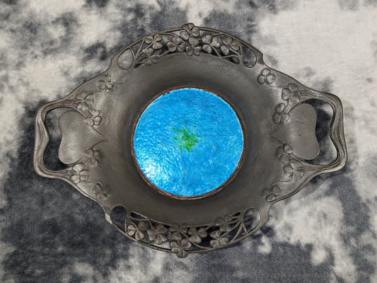 Antique Archibald Knox Arts & Crafts Enamelled Pewter Shamrock Bowl Dish 0287
