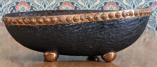 19th Century Half Coco De Mer Seychelles Nut Seed Shell Copper Bowl Dish Antique