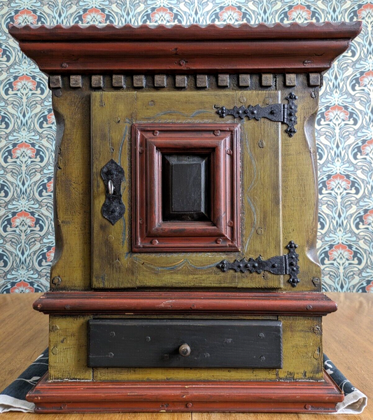 18 / 19th Century Scandinavian Hand Painted Wall Cabinet Antique Folk Art Sweden