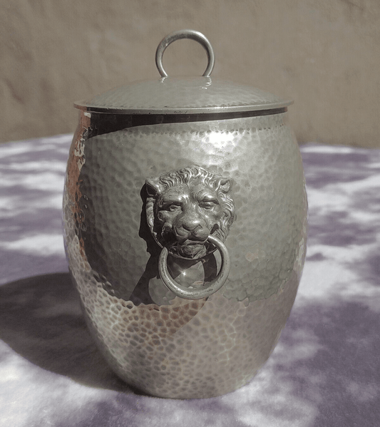 Antique Arts & Crafts Liberty & Co Solkets Tudric Pewter Lion Tobacco Jar Canister