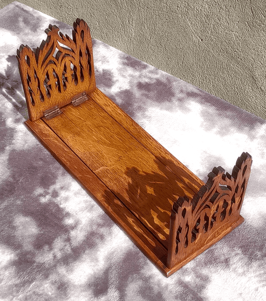 19th Century Carved Mahogany Gothic Revival Expanding Book Stand Rest Slide