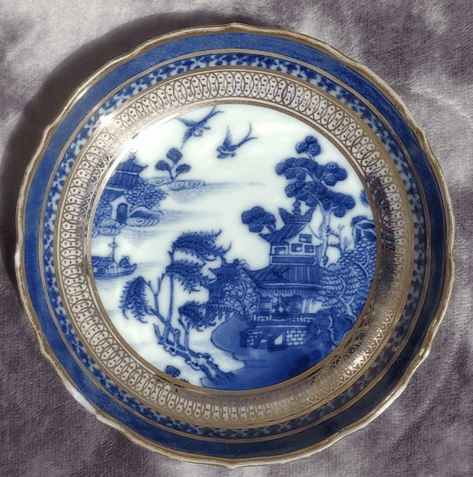 18. århundrede Caughley Blue White Chinoiserie Porcelain Saucer Bowl Dish