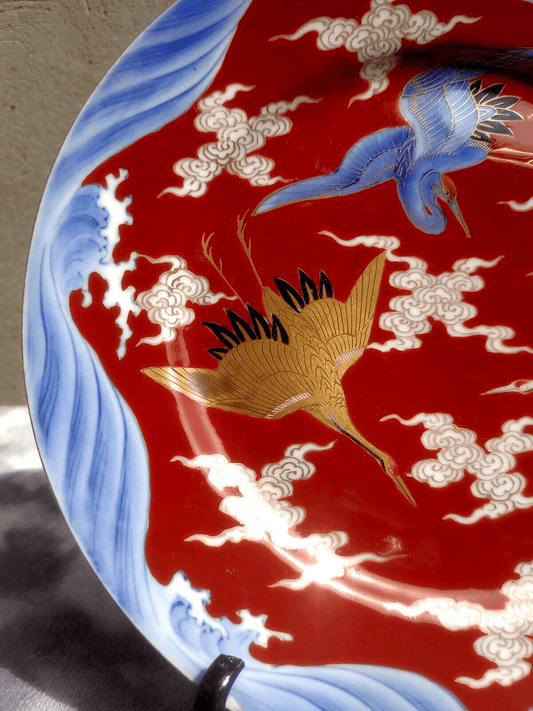 Antik japansk meiji periode fukagawa seiji arita kran keramisk plade 24 cm