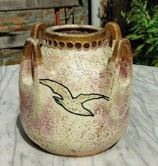 C.1900 Austrian Amphora Teplitz Keramik Emaljeret mågevase Antik Art Nouveau