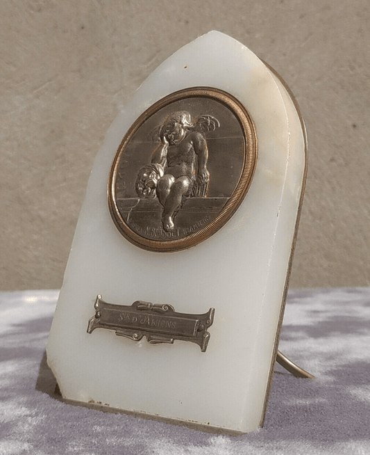 Antik fransk marmor Display Plaque Weeping Angel of Amiens WW1 Memento Souvenir