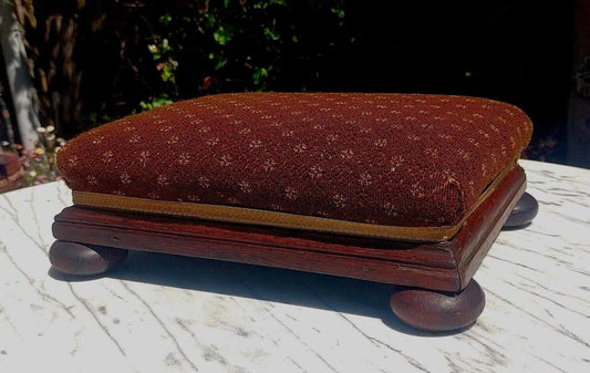 Victoriansk 19. århundrede mahogni rektangel bolle fødder fodskammel / fodstøtte