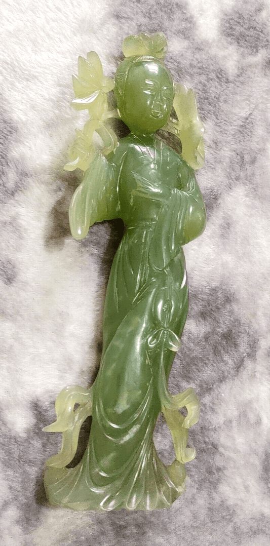 Stor antik kinesisk Qing udskåret grøn jade geisha figurskulptur