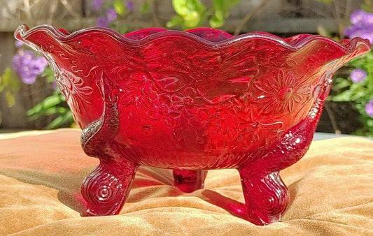 Victorian c.1890 Sowerby Original Diving Dolphin Ruby Red Tri-Footed Glass Bowl