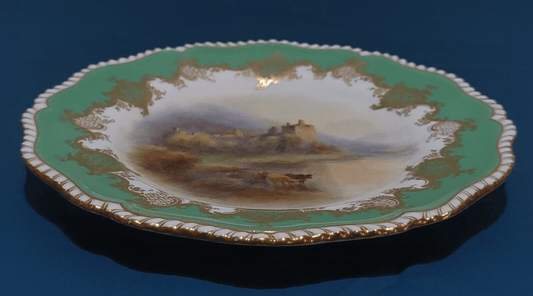 Antik 1921 Royal Worcester Plate Highland Cattle Kilchurn Castle af H. Stinton