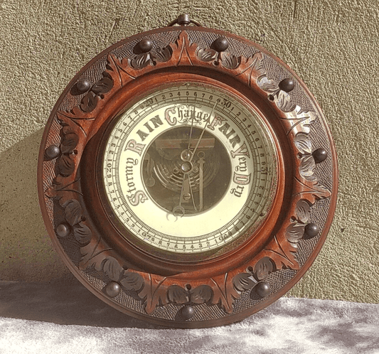19. århundrede udskåret eg Aneroid Barometer termometer Antik viktoriansk