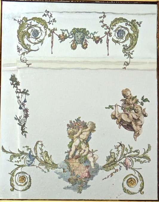 Rare 19th Century French Rococo Reverse Decoupage Mirror Cherub Faun Antique