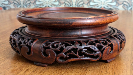 Chinese 19th Century Qing Carved Openwork Hardwood Rosewood Display Stand Base
