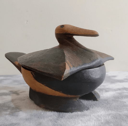 African Tribal Rotse Lozi Zambia Zoomorphic Duck Bowl Container Wood Carving