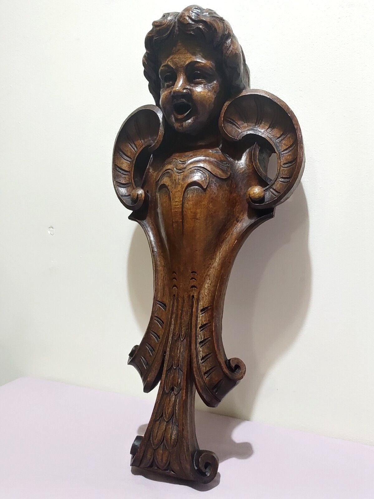 Scandinavian 19th Century Carved Danish Amager Triangular Shelf Folk Art Antique